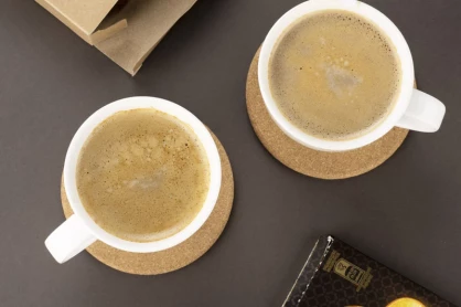 pakiety po 25 x 4 sztuki podkładek zapakowane w kraftowe pudełko